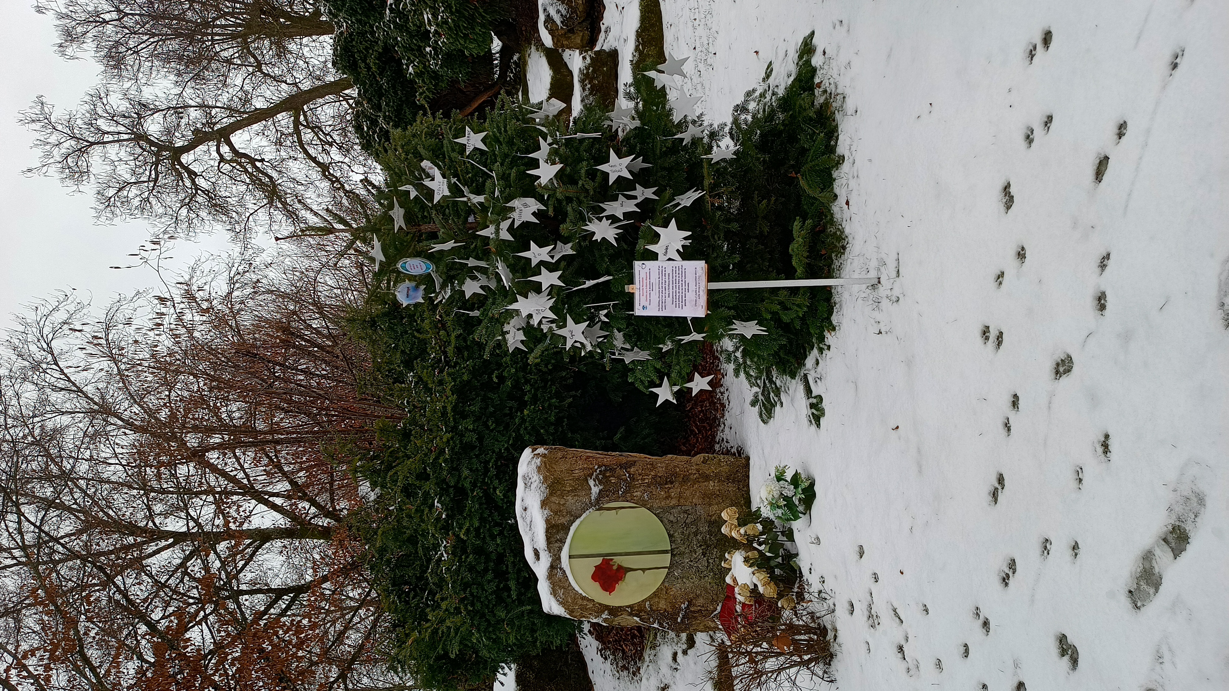 Lundi 12 janvier: dépose des étoiles du sapin à la Stèle. Et elles sont nombreuses.